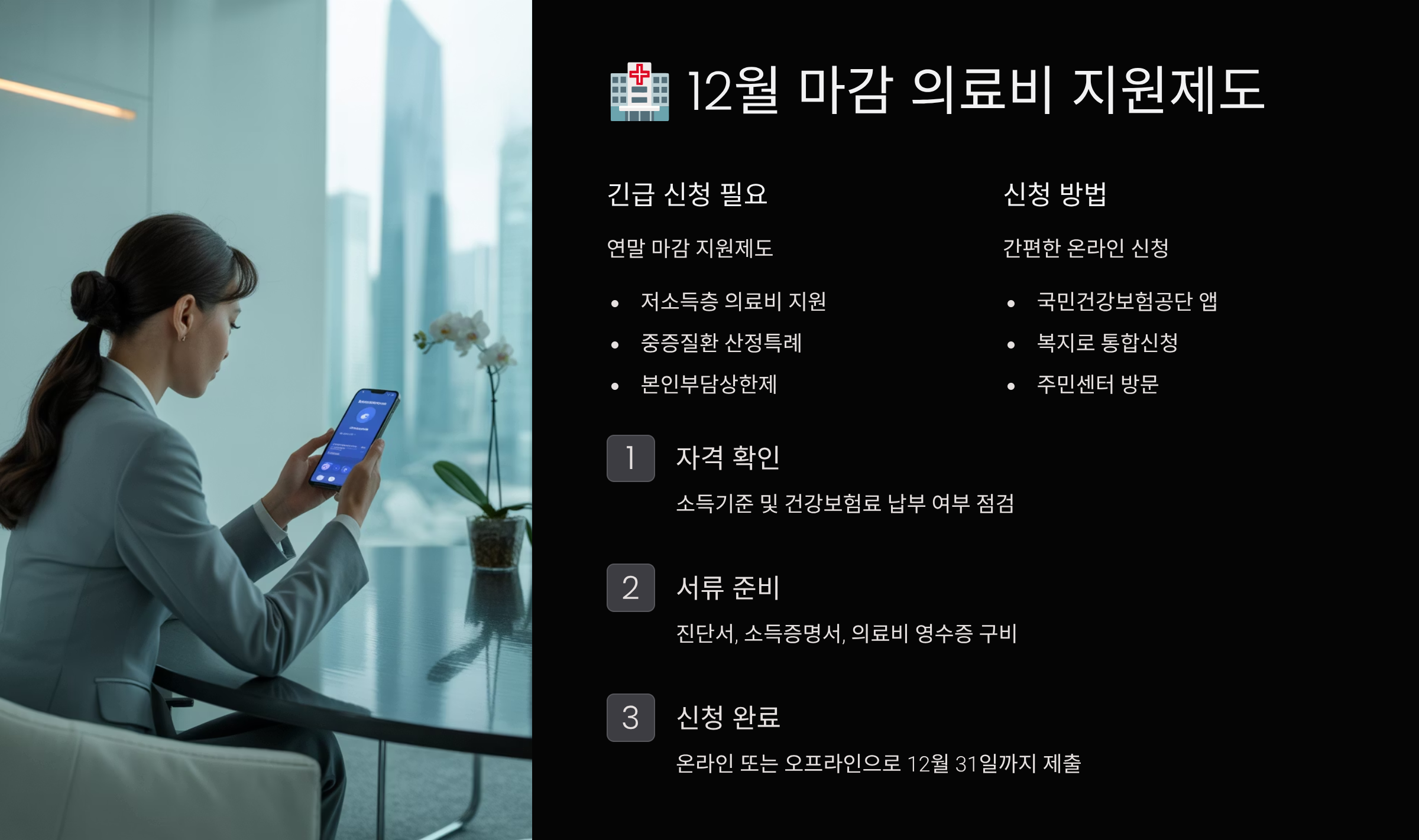 매년 12월이면 다양한 의료지원 제도의 신청 마감이 다가와요. 특히 2025년 의료비 지원을 받으려면 지금 신청해야 하는 제도들이 많답니다. 놓치면 1년을 기다려야 하는 중요한 복지혜택들을 정리해 드릴게요. 🏥