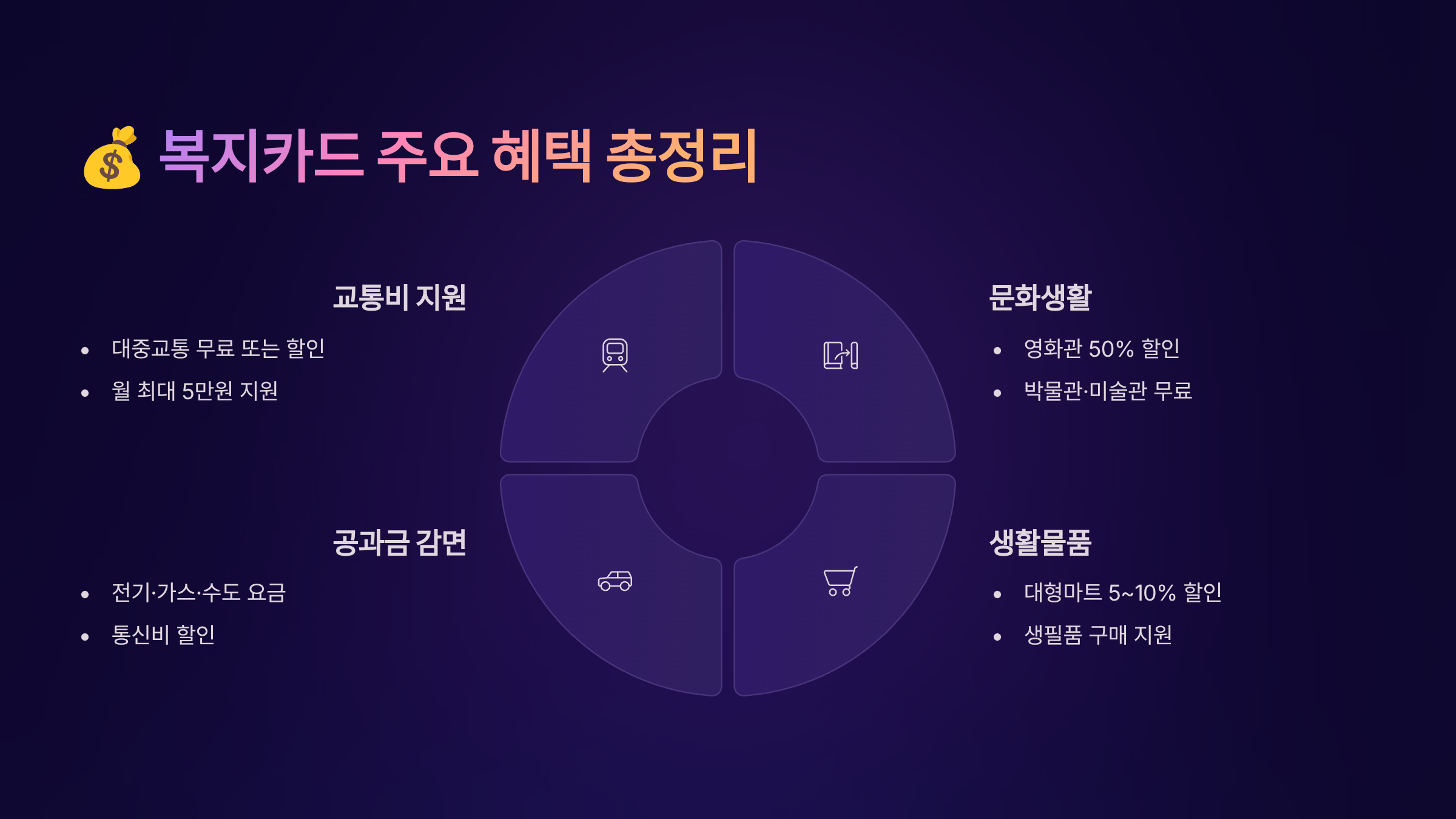 복지카드는 우리 일상에서 놓치기 쉬운 다양한 혜택을 한 장의 카드로 누릴 수 있게 해주는 똑똑한 생활필수품이에요. 정부와 지자체에서 제공하는 각종 할인과 지원을 받을 수 있는 이 카드는 교통비부터 문화생활까지 폭넓은 영역에서 실질적인 도움을 제공한답니다. 특히 2025년 현재는 디지털 복지카드로의 전환이 활발하게 이루어지면서 더욱 편리하고 다양한 서비스를 이용할 수 있게 되었어요.