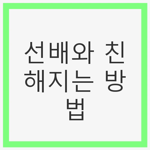 먼저, 선배와의 첫 만남에서 가장 중요한 것은 자연스러운 접근입니다. 처음에는 어색할 수 있지만, 조금씩 다가가면 훨씬 더 쉽게 친해질 수 있습니다. 그럼 어떻게 하면 선배와 친해질 수 있을까요? 다양한 방법을 통해 선배와의 소중한 관계를 맺어보세요.