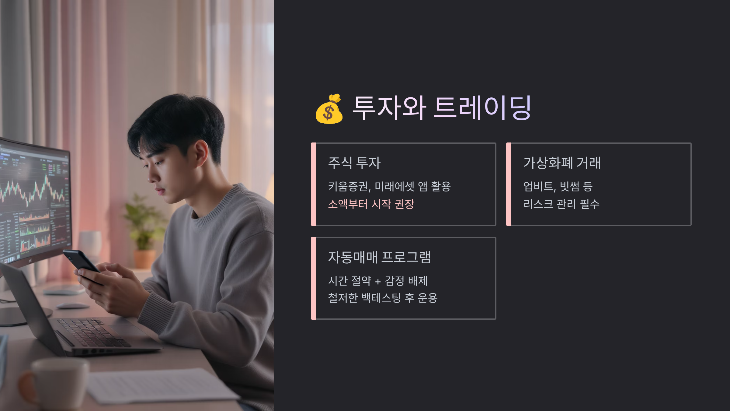 투자 공부도 중요해요. 유튜브나 네이버 금융에서 무료로 제공하는 투자 교육 콘텐츠를 활용하면 좋아요. 경제 뉴스를 꾸준히 읽고, 기업 실적 발표나 경제 지표를 체크하는 습관을 들이세요. 모의 투자로 먼저 연습해 보는 것도 좋은 방법이에요. 실제 돈을 투자하기 전에 충분히 공부하고 경험을 쌓는 것이 중요하답니다! 📈