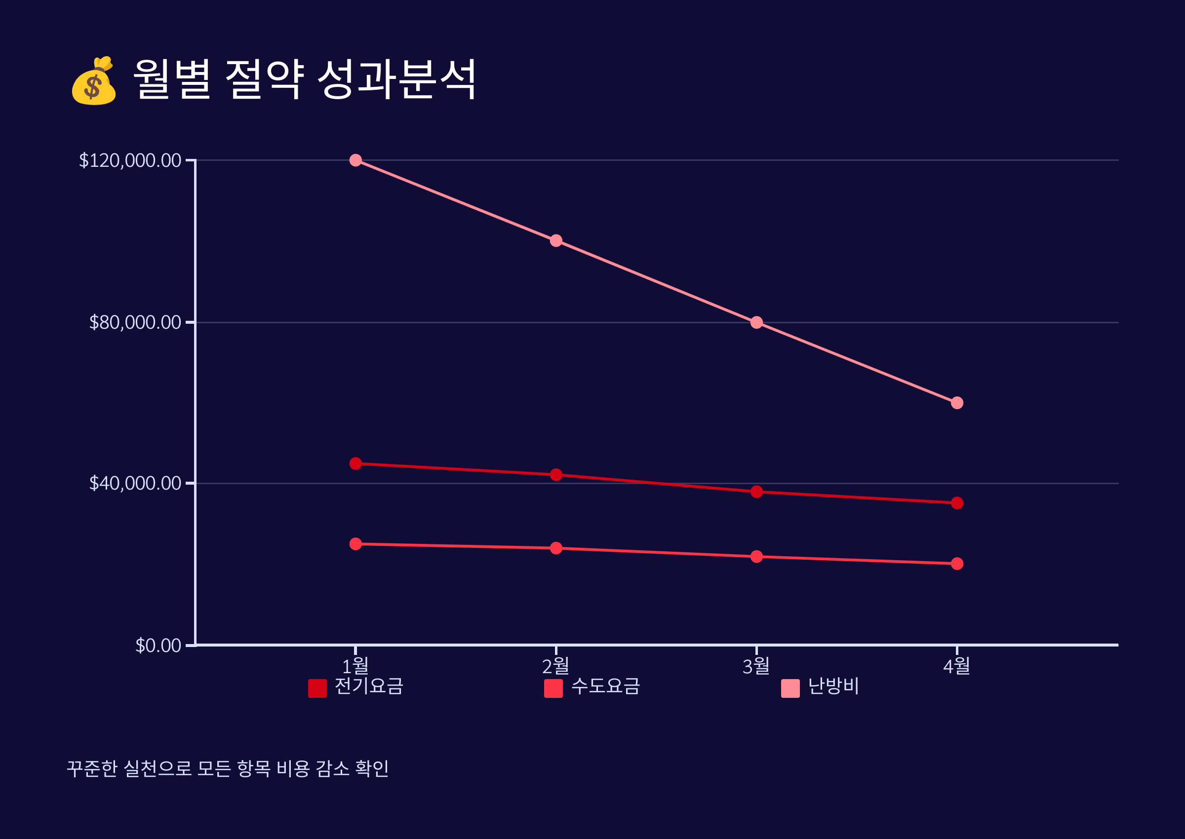 절약 항목별로 분석해 보니 가장 효과가 큰 건 난방비(42,000원)였고, 그다음이 전기요금(23,000원), 수도요금(13,000원) 순이었어요. 초기 투자비용(LED 전구, 절수기, 에어캡 등)이 약 10만 원 들었지만, 2개월이면 회수할 수 있는 금액이에요.
