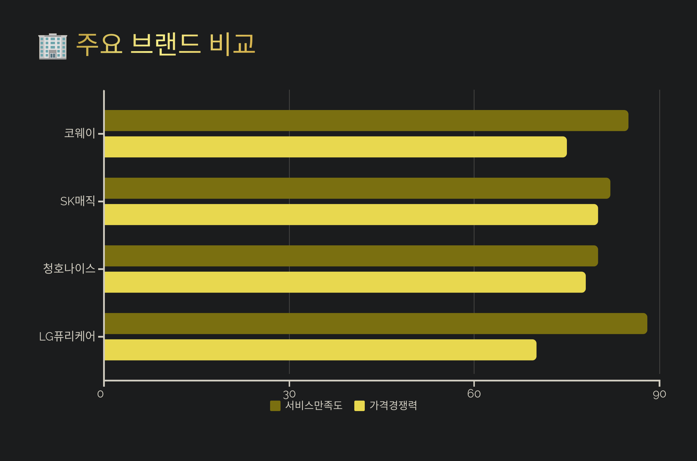 정수기 시장에는 다양한 브랜드가 경쟁하고 있어요. 각 브랜드마다 고유한 기술과 특징이 있어서 어떤 걸 선택해야 할지 고민이 많으실 텐데요. 코웨이, LG, 쿠쿠, SK매직, 청호나이스 등 주요 브랜드들의 장단점을 비교해 보면 나에게 맞는 제품을 찾기가 훨씬 쉬워져요. 저도 처음엔 브랜드 차이를 몰랐는데, 자세히 알아보니 각자의 강점이 뚜렷하더라고요.