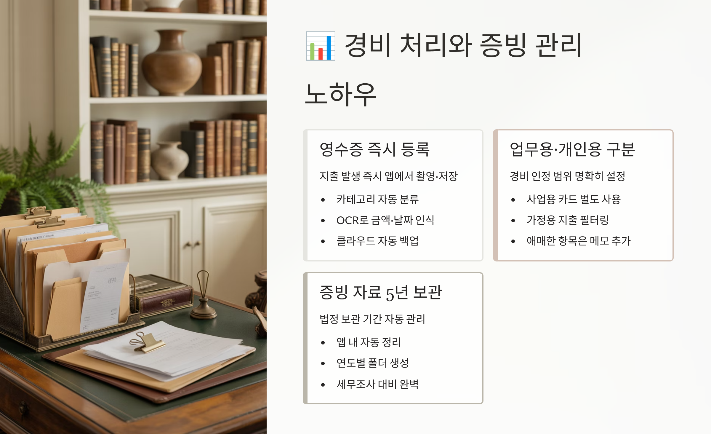 접대비 처리할 때 특히 조심해야 해요. 클라이언트와 식사했다면 상대방 이름, 회사명, 미팅 목적을 메모해 두세요. 세무 조사 때 이런 디테일이 정말 중요하거든요. 자비스 앱은 영수증 사진을 찍을 때 메모를 추가할 수 있어서 편리해요. "○○회사 김대리님과 프로젝트 미팅" 이런 식으로 간단히 적어두면 나중에 기억하기 쉬워요! 📝